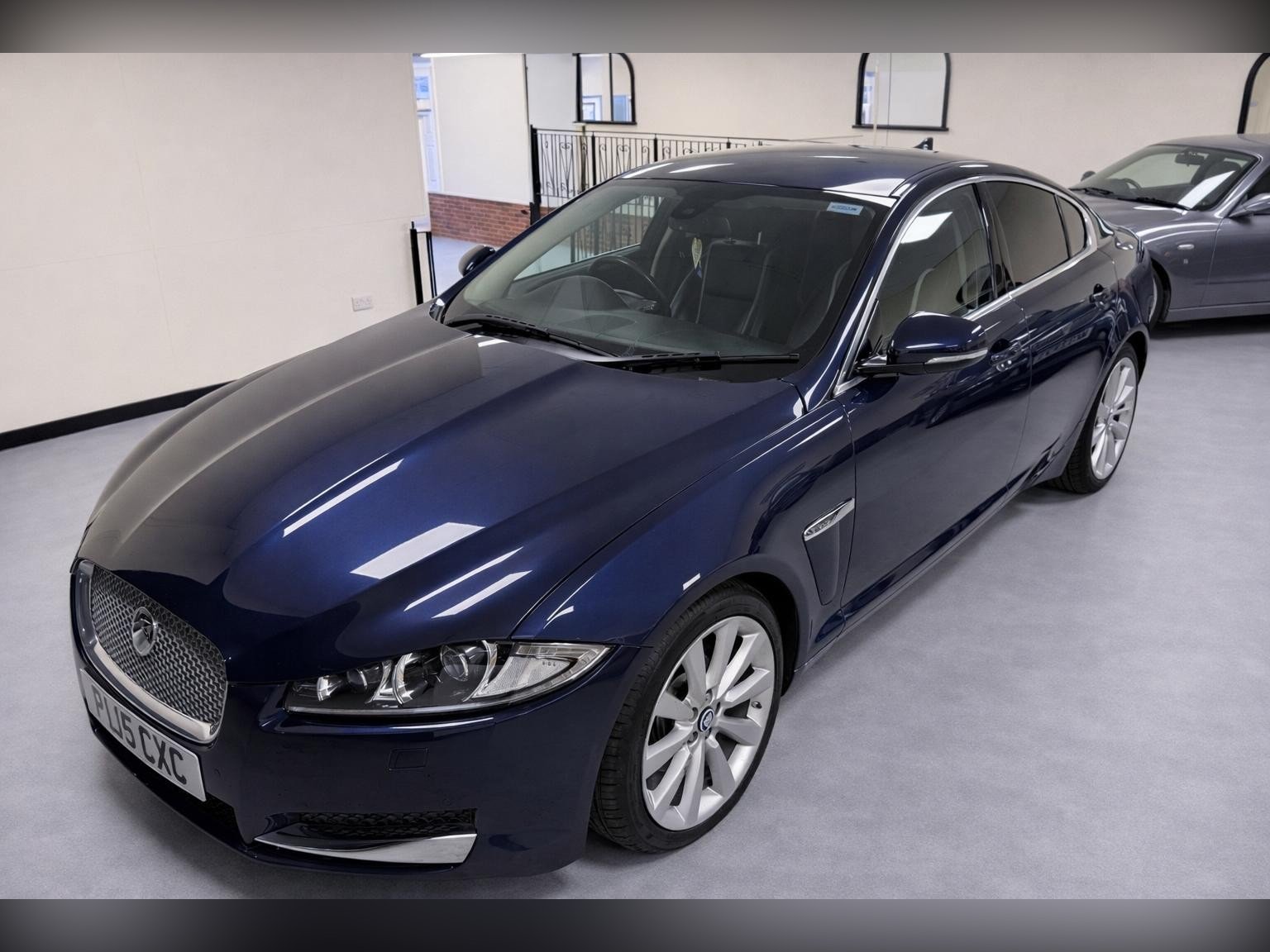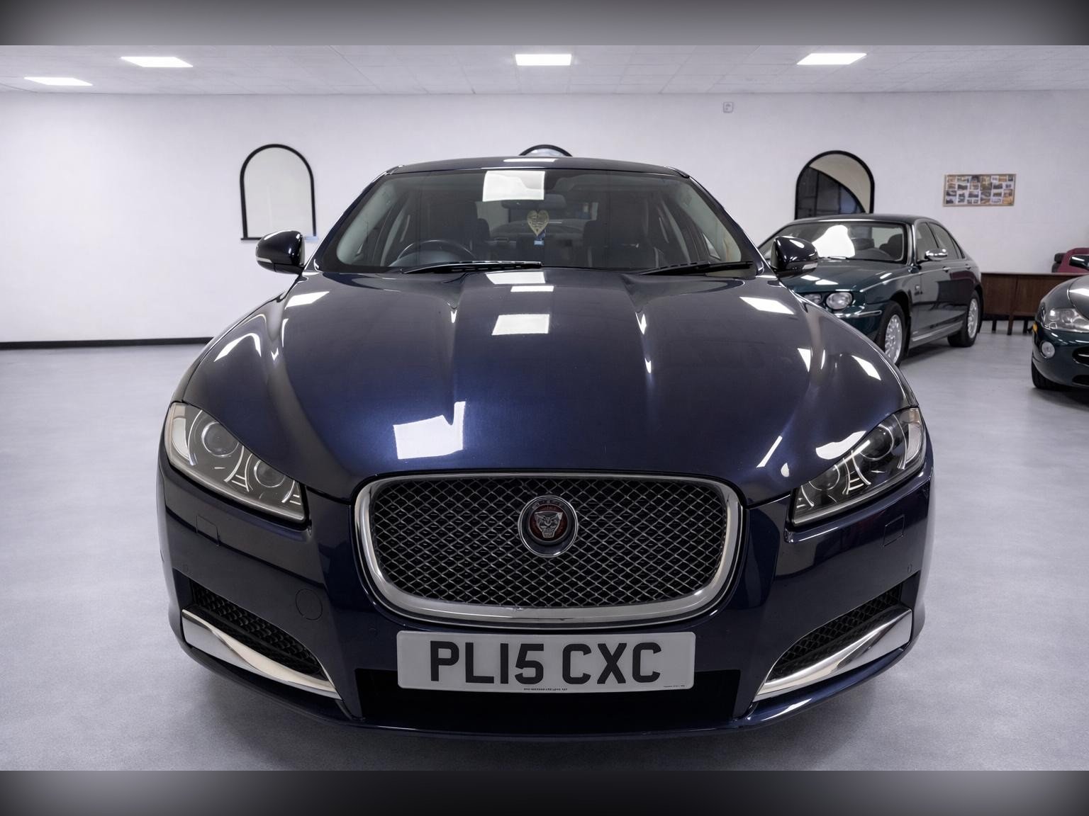 Specification includes leather interior, dual-zone climate control, touchscreen infotainment system, reverse parking camera, alloy wheels, cruise control, electric windows and mirrors, and all the usual Jaguar XF refinements.